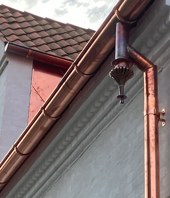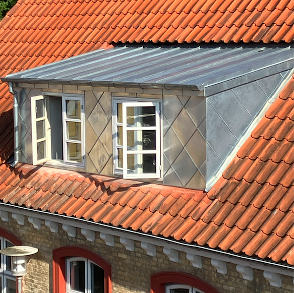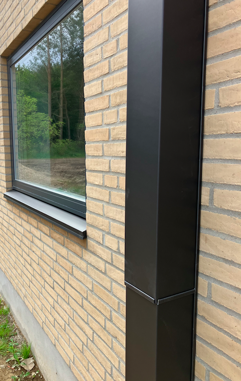 Nedløbsrør og sålbænke i forpatineret antracit zink.