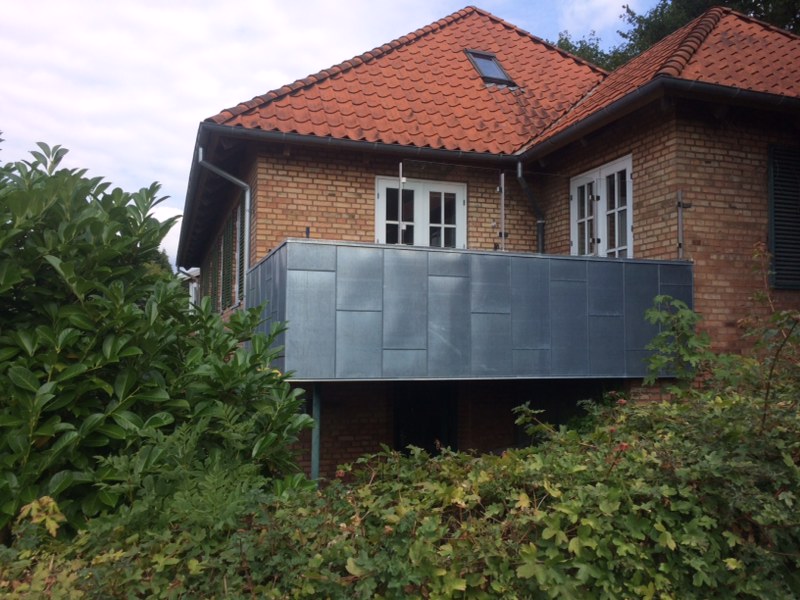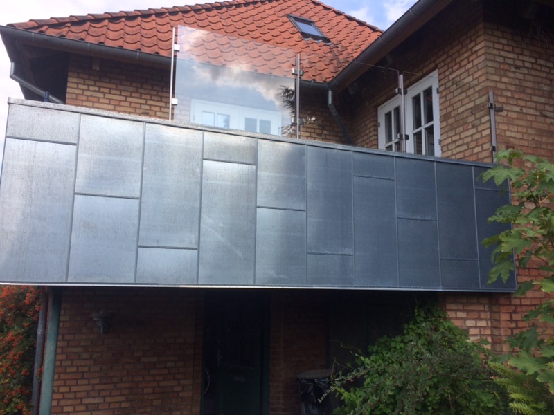 Det er da pænere i zink, end bølge-eternit på højkant. Glas er også fra mig.